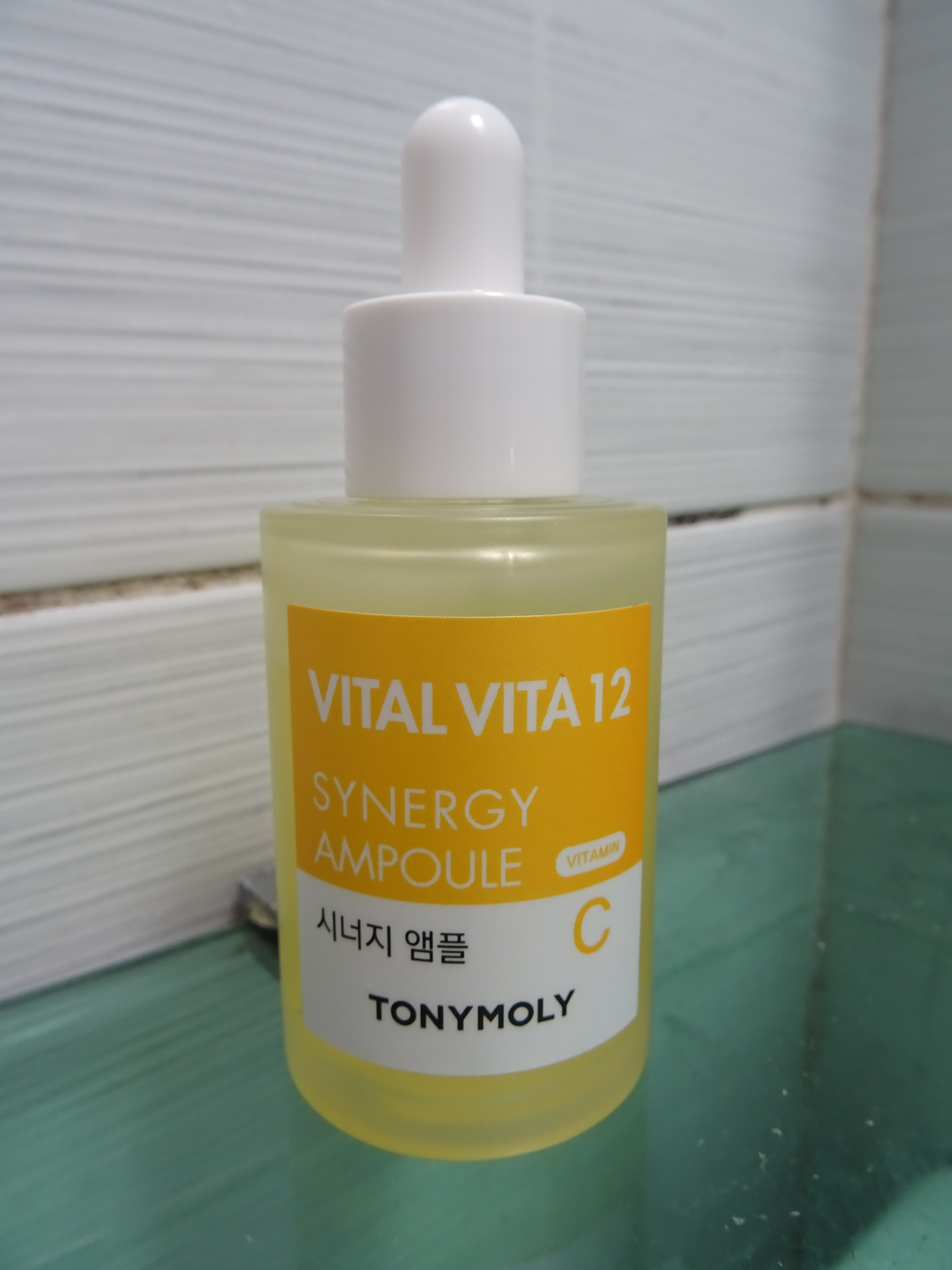 The ampoule I use is called VitalVita12 Synergy Ampoule C from Tony Moly.