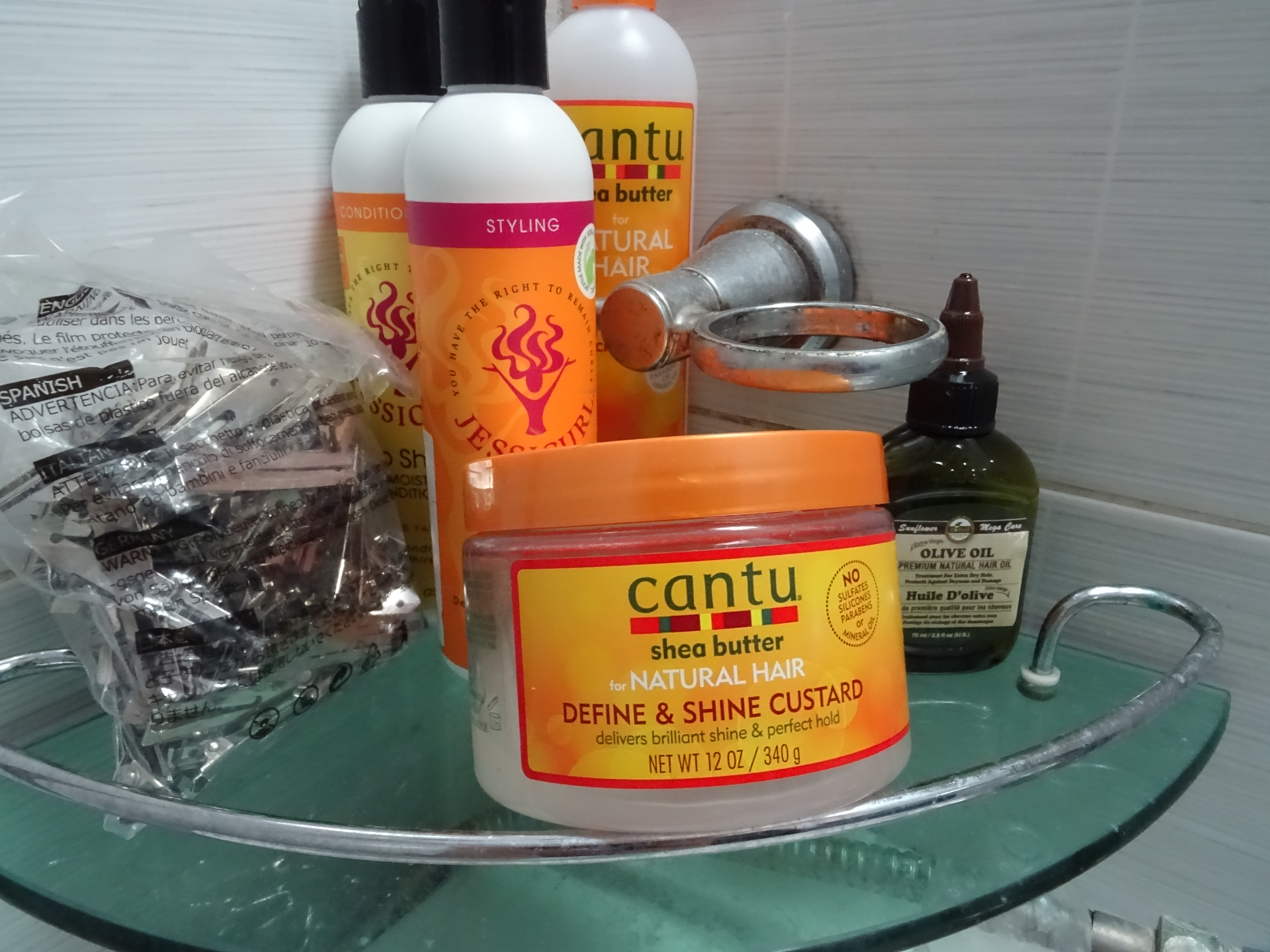 The custard I use is the Define and Shine Custard by Cantu from their Shea Butter for Natural Hair line. A lot of custards require you to use them on soaking wet hair, but when I’m doing the Laura Routine/80/20 gel method, I have found that this custard works really well for my damp hair.