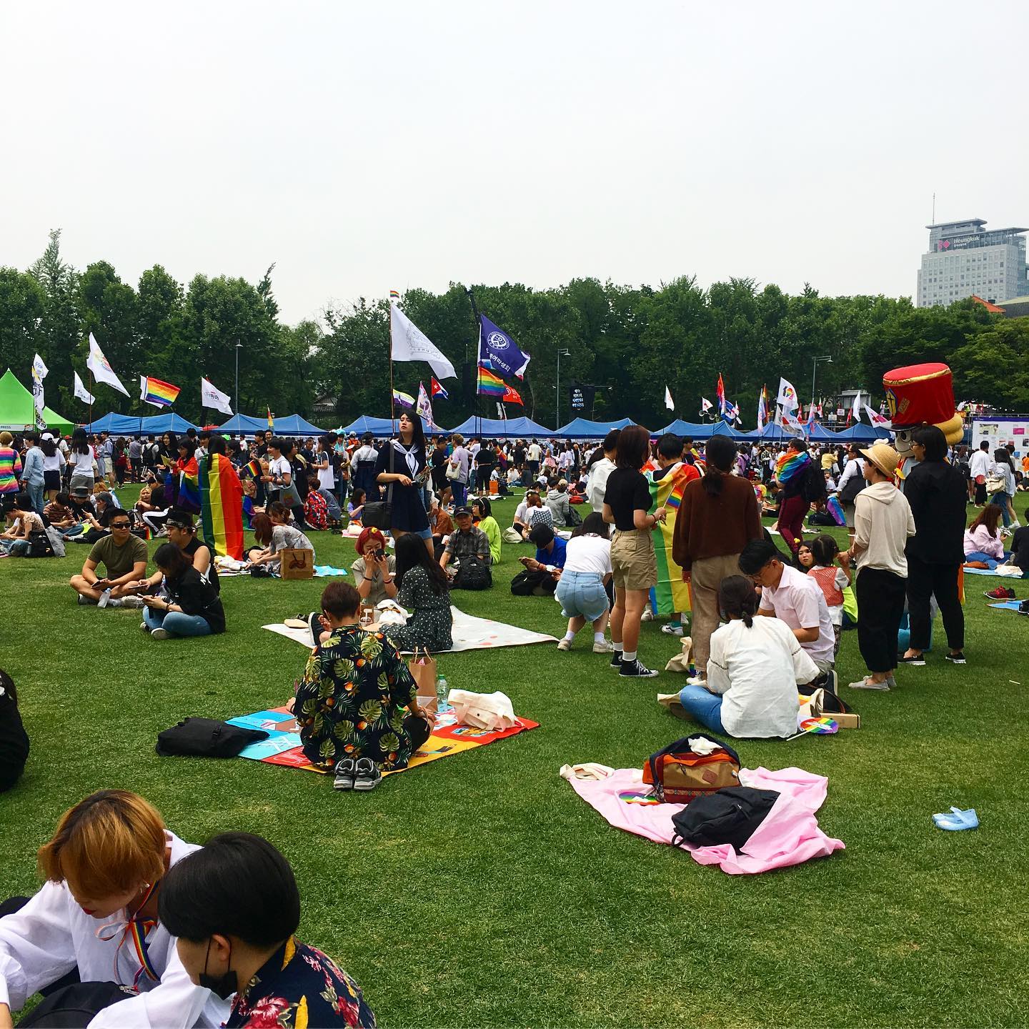 I saw a plethora of rainbow flags, LGBTQ+ organisations advertising themselves, men and women confidently holding hands with their partners without fear of judgement, no one was staring uncomfortably at anyone. It was a safe and happy moment. At one moment a dance circle formed as I was walking around and I found myself as part of the ring. A troupe of young guys came out and performed a few dances to different Kpop songs as the crowed hollered and cheered them on. It dispersed as quickly as it began but it was a fun time whilst it lasted.
