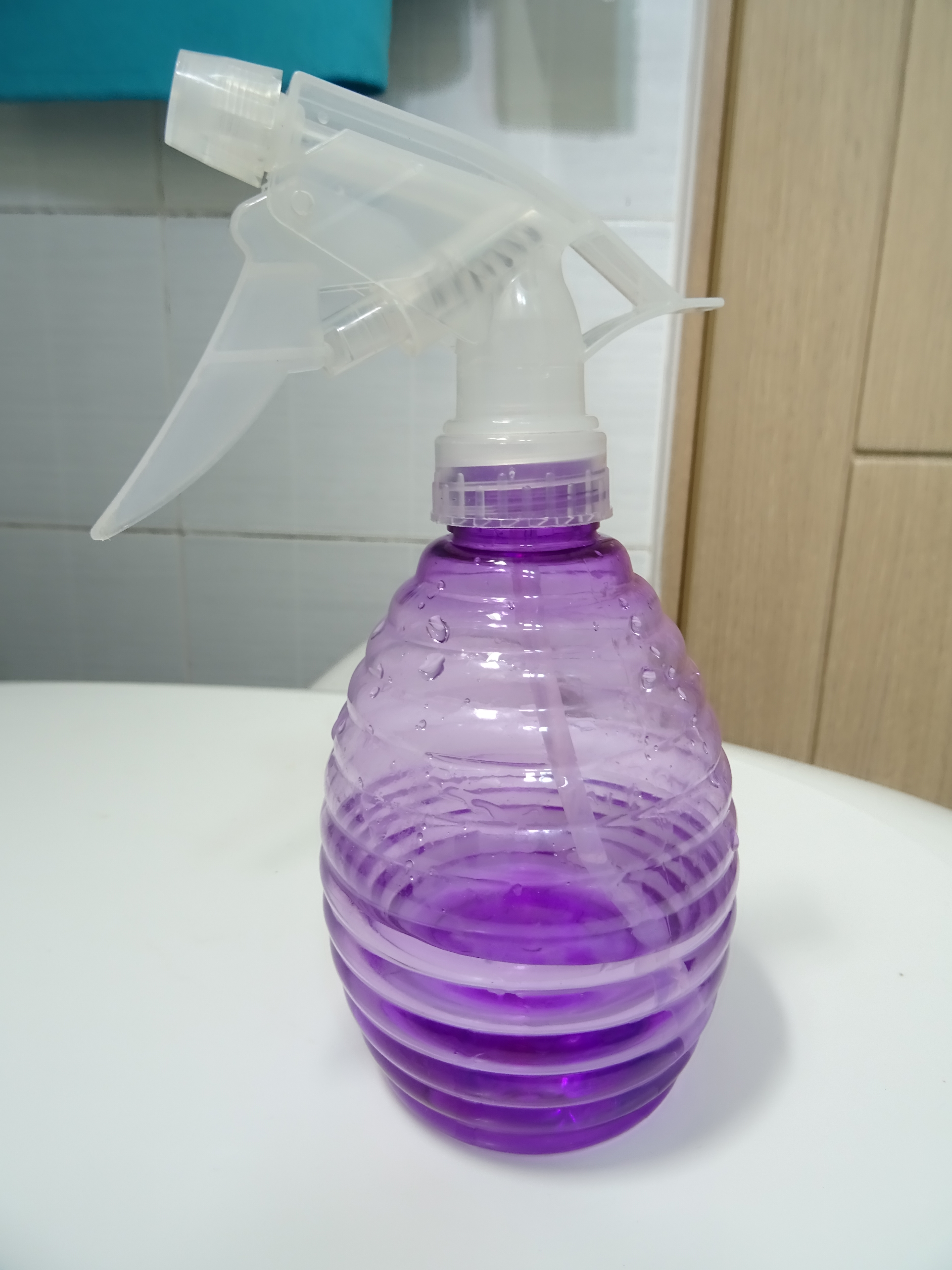 Using a spray bottle with warm water, I wet my hair thoroughly until when I scrunch it, it makes a squishing sound and water drips out from between my fingers. Warm water is best to use if you have low porosity hair like me.