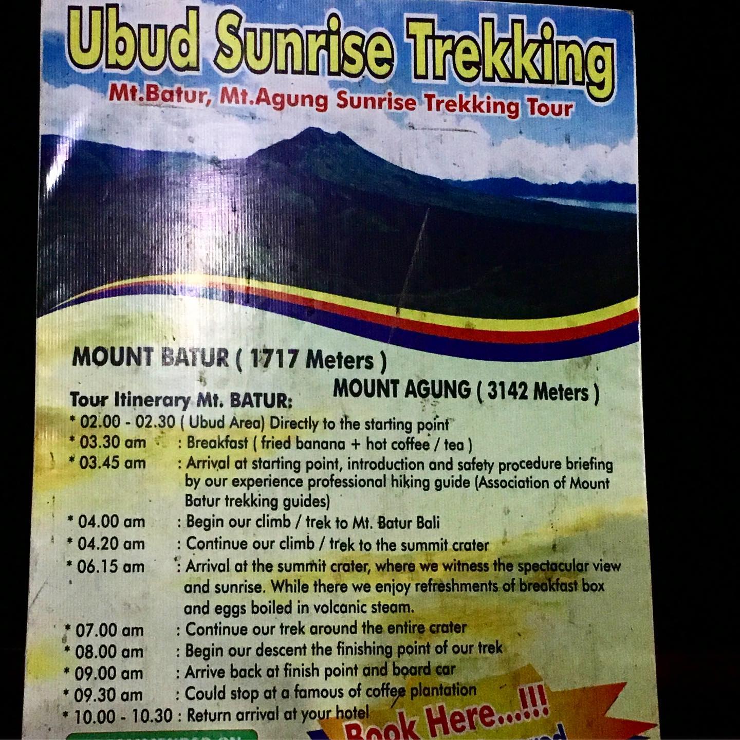 - Mount Batur’s last eruption was in 2000.