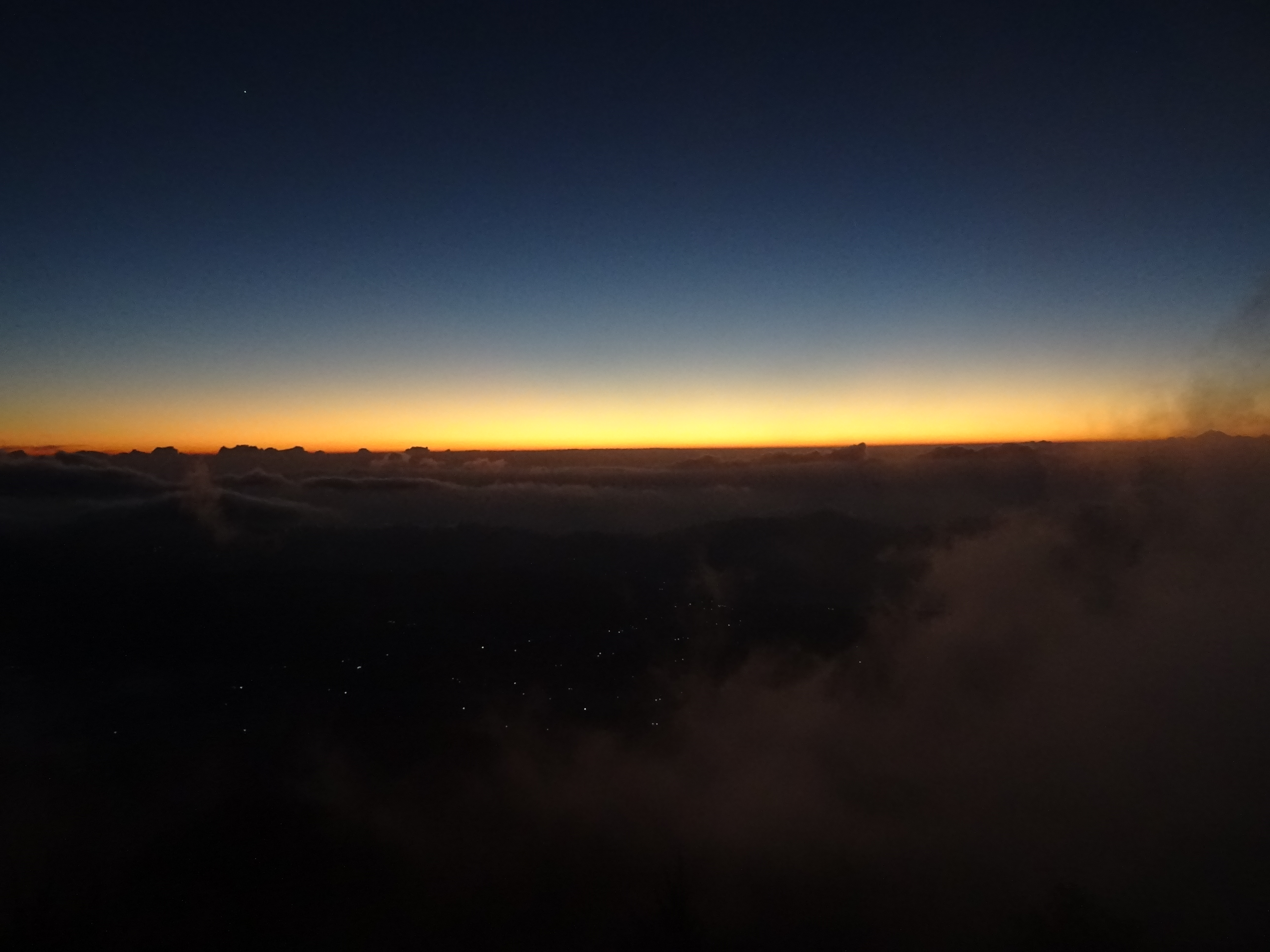 As I sat at the summit I watched the light from the sun bleed into the pitch black of the night sky turning it deep blue, a lighter blue, there was a slight tinge of green and suddenly the sun burst over the horizon flooding the sky and the landscape in a warm orange and yellow glow. It was astonishing and I can’t believe I was there to see it.